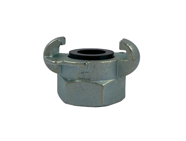 Die Reemster KIG- Pressluftkupplung ist eine Klauenkupplung mit Innengewinde und mit Sicherungslöchern gegen unbeabsichtigtes Herausdrehen ausgestattet. Sie entspricht der DIN 3489 und ist aus verzinktem Gusseisen gefertigt. Inklusive Gummidichtung (NBR) für eine dichte Verbindung. Maximaler Betriebsdruck 10 bar.
